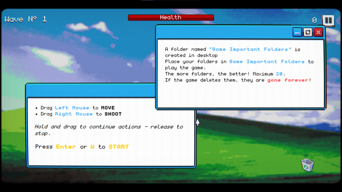 في هذه النسخة الآمنة على الويب، الملفات وهمية تمامًا ولا يتم حذف أي شيء حقيقي. أما النسخة الأصلية على الكمبيوتر ف قادرة على حذف ملفات فعلية. في هذه اللعبة أنت تقاتل الفيروسات وتحاول حماية جهازك.